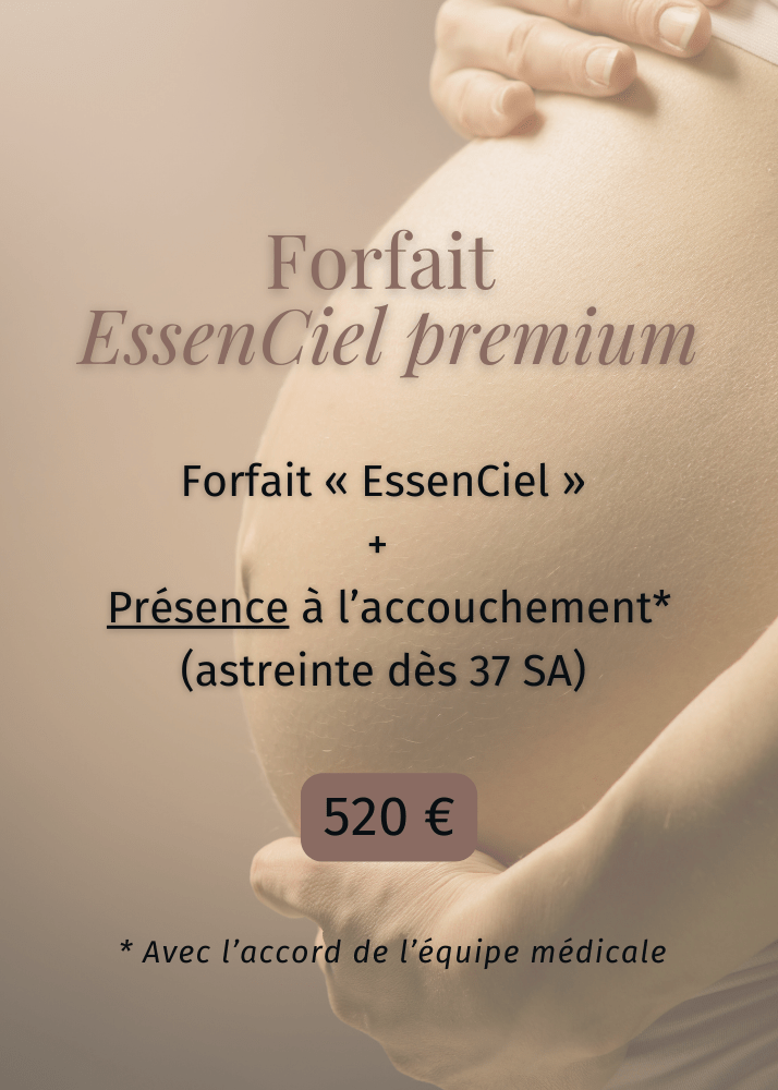Je vous propose 2 gammes de forfaits, avec ou sans soutien pendant l’accouchement, pour vous accompagner au mieux là où vous en êtes.